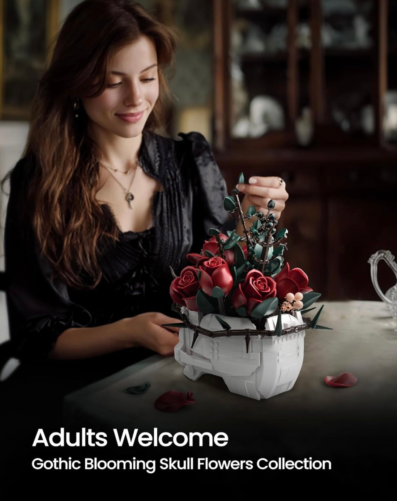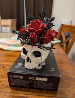 A beautifully detailed rose and skull brick set that blends elegance and bold design. Once assembled, it becomes a striking décor piece that instantly draws attention.